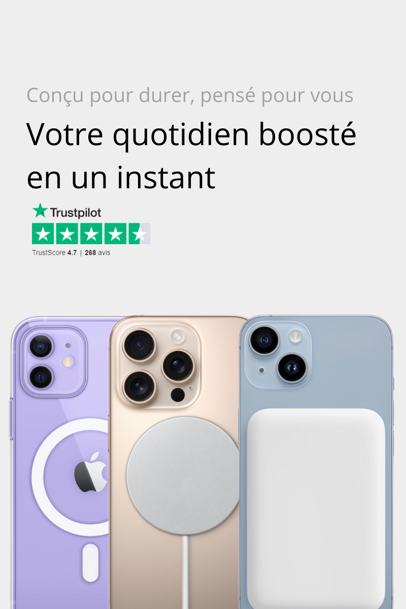 Simplifiez votre quotidien avec nos accessoires magnétiques : coque, chargeur et batterie externe conçus pour une utilisation rapide, pratique et sans fil.